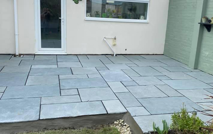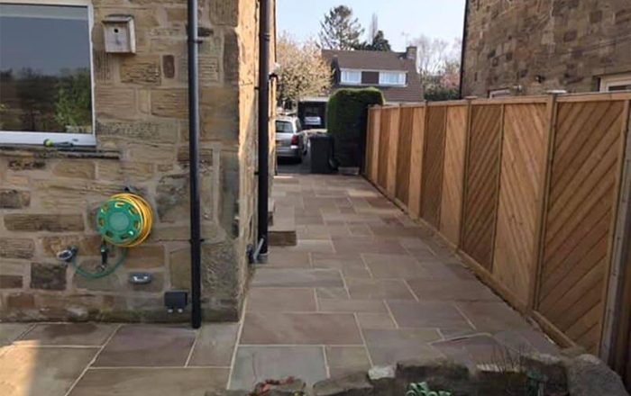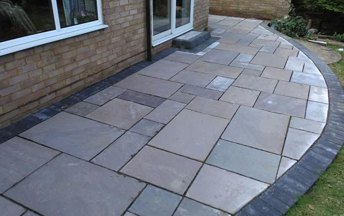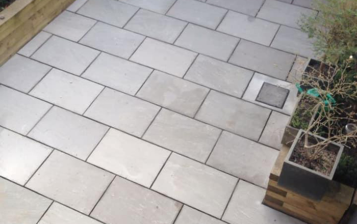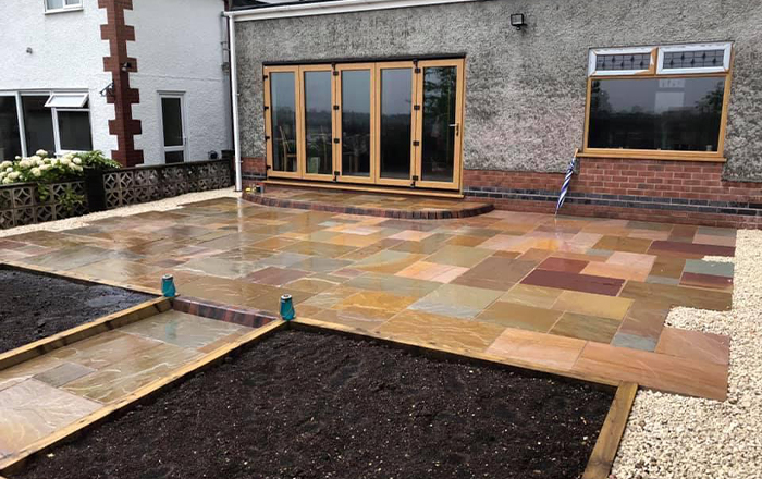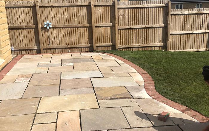 Patios can be installed using a variety of products, Indian sand stone, concrete flag stones or York stones being among the most popular.